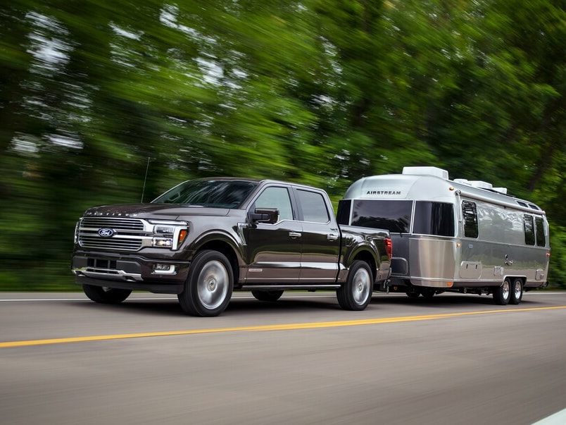 Every F-150 comes with automated emergency braking, blind-spot monitoring, and lane-keeping assist. Available upgraded features include adaptive cruise control, evasive steering assist, a 360-degree camera, and active park assist.