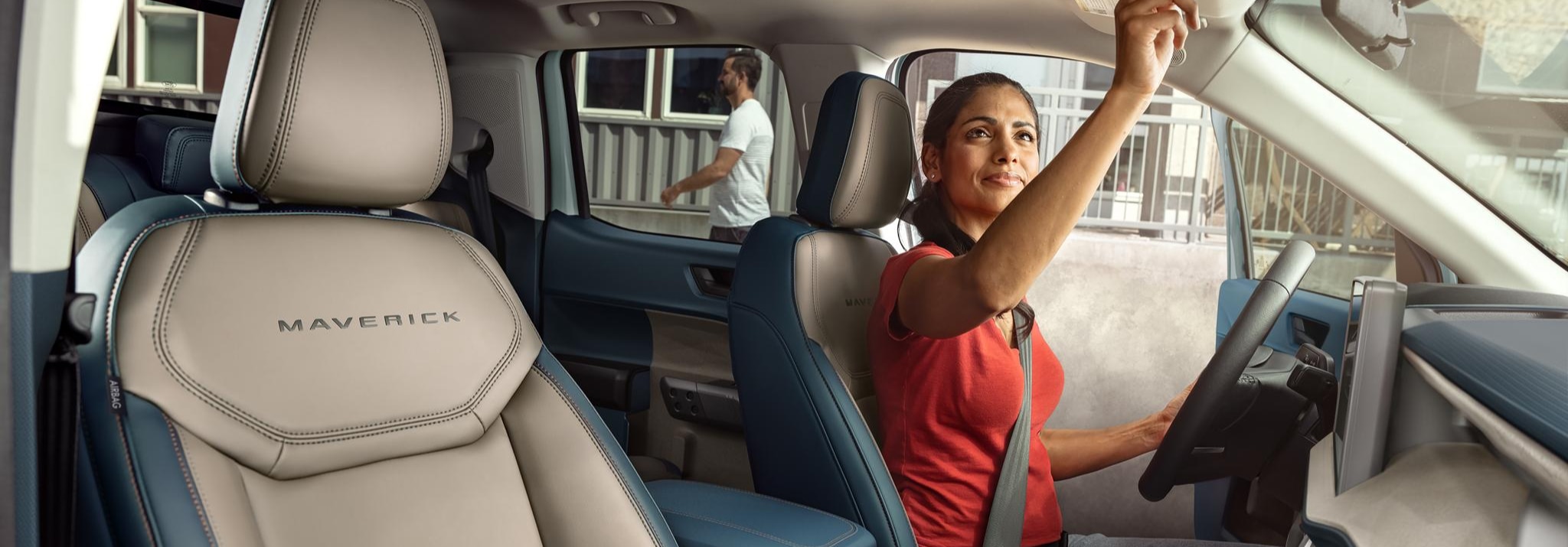 Climb inside the 2026 Ford Maverick and experience a well-designed interior that's both comfortable and functional. Its spacious cabin offers ample room for up to five passengers, with comfortable cloth or ActiveX trimmed seats. Enjoy convenient features like the SYNC 4 infotainment system with a 13.2-inch touchscreen and wireless Apple CarPlay and Android Auto, voice-activated automatic air conditioning, and a manual tilt/telescoping steering column for a personalized driving position.